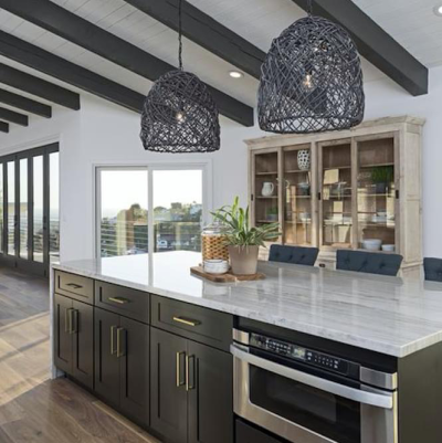 Add a custom kitchen island that has all the modern features, such as outlets, charging ports, extra storage space, sinks, stovetops, and more. Designed to fit in your space!